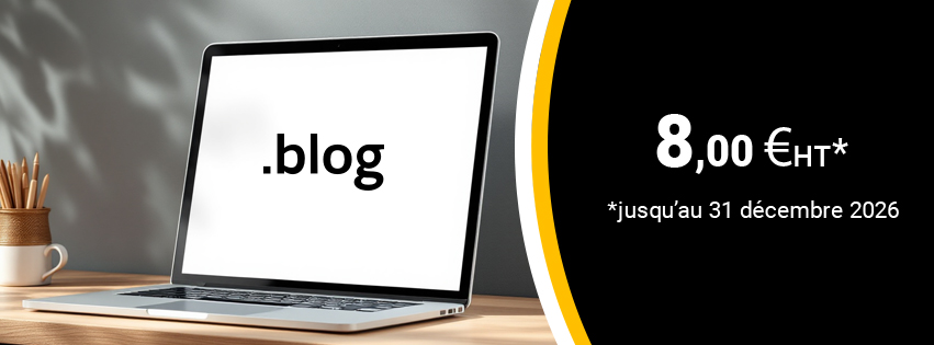 En 2026, le .BLOG est au tarif promotionnel de 8 € HT pour la première année d’enregistrement sur Namebay.com.