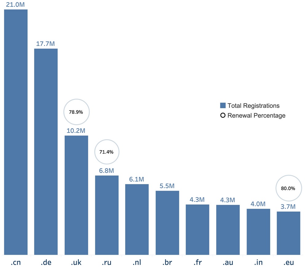 Le taux de renouvellement préliminaire pour ces deux extensions se maintient à un niveau élevé de 75,0 %, prouvant que les détenteurs de domaines considèrent leur adresse web comme un actif précieux sur le long terme.